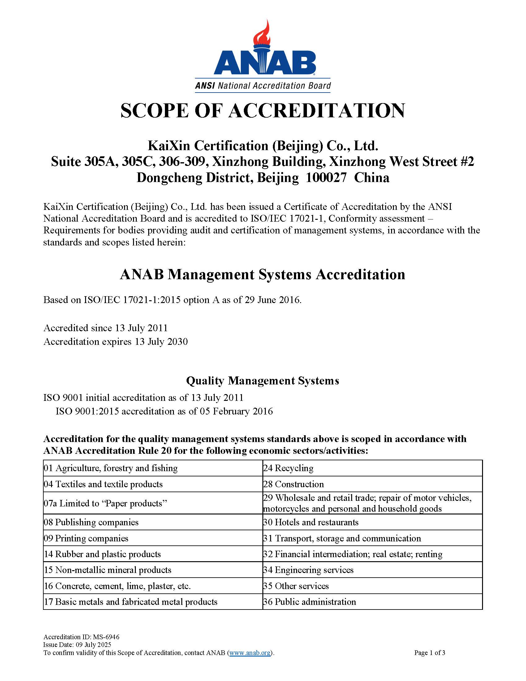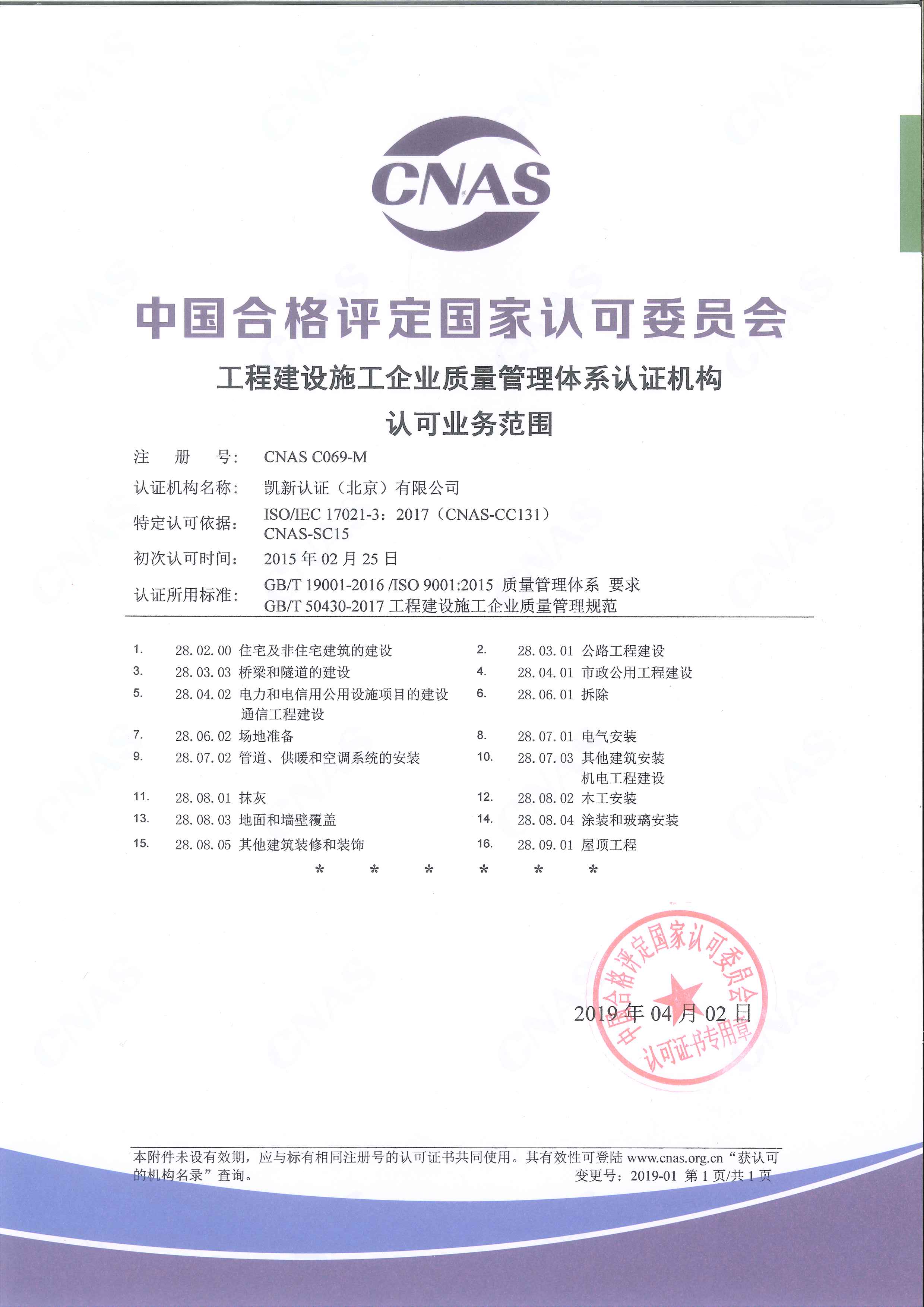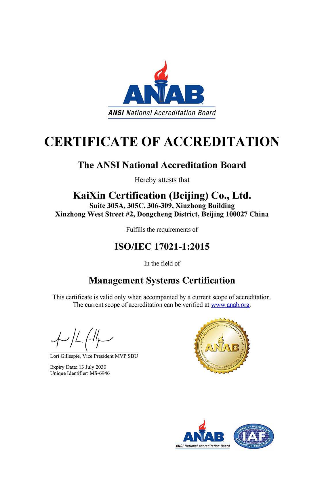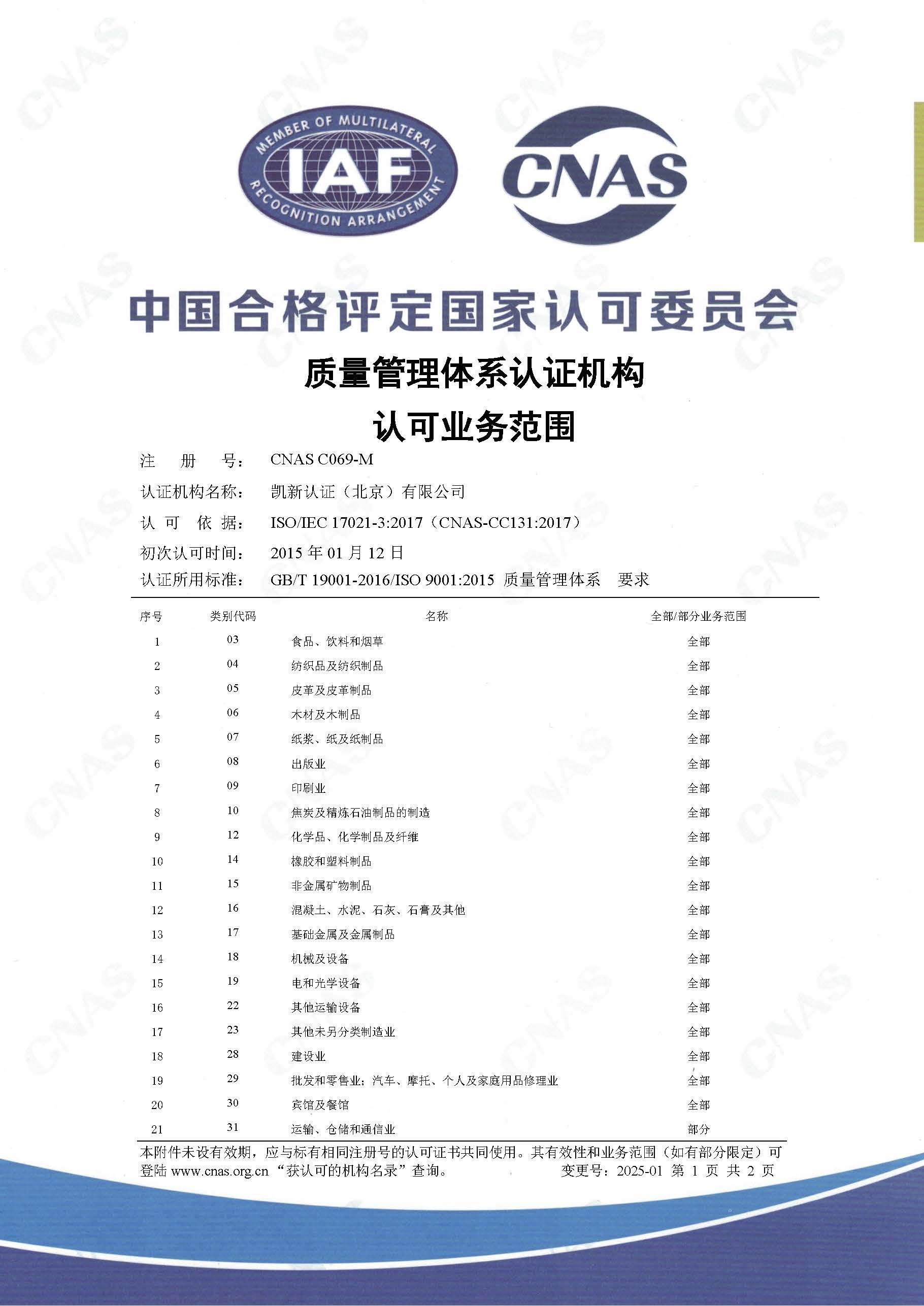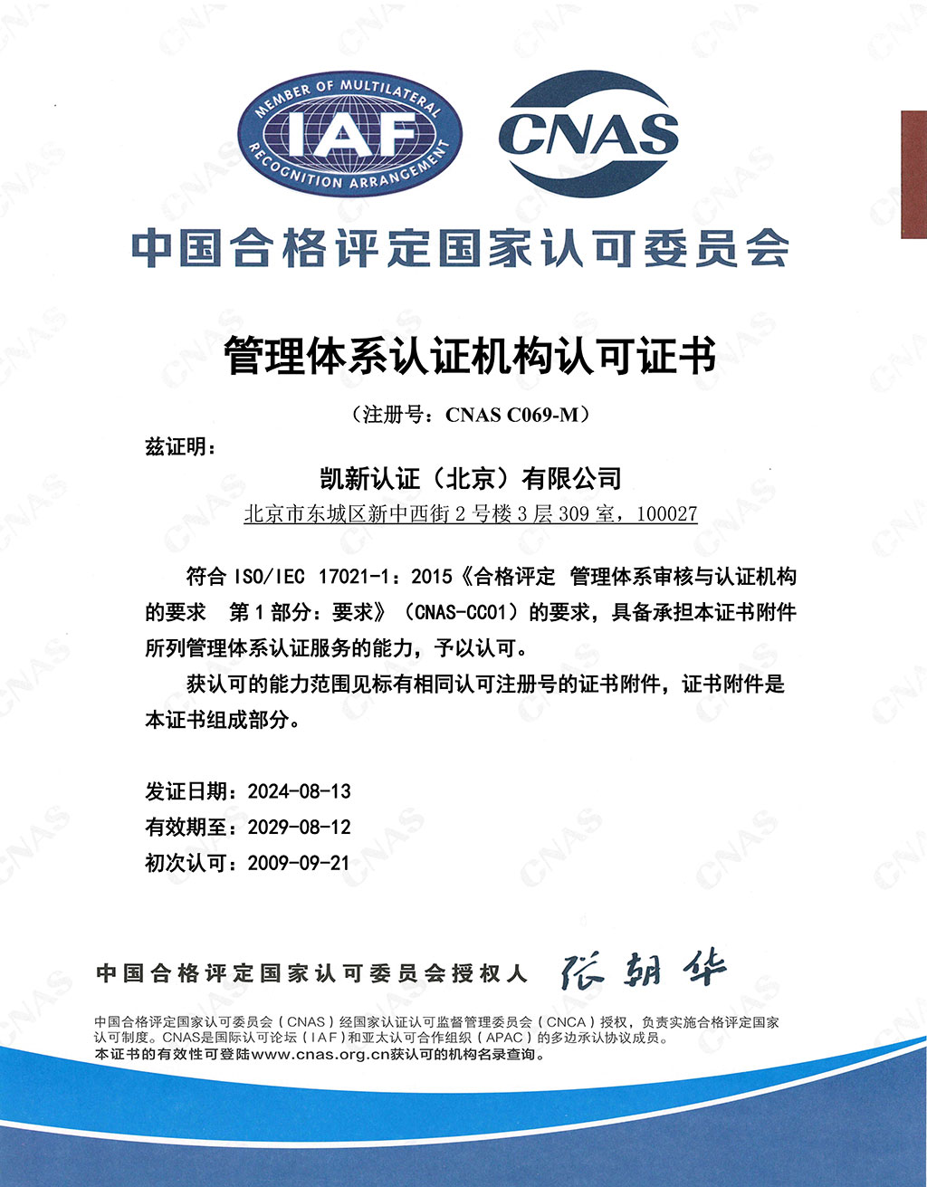 CNAS管理體系認(rèn)證機構(gòu)認(rèn)可證書