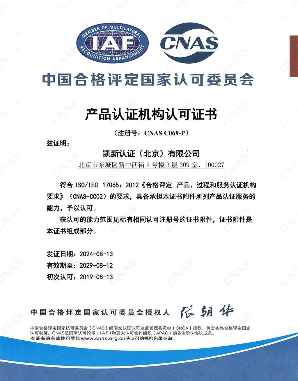 CNAS產(chǎn)品認(rèn)證機構(gòu)認(rèn)可證書