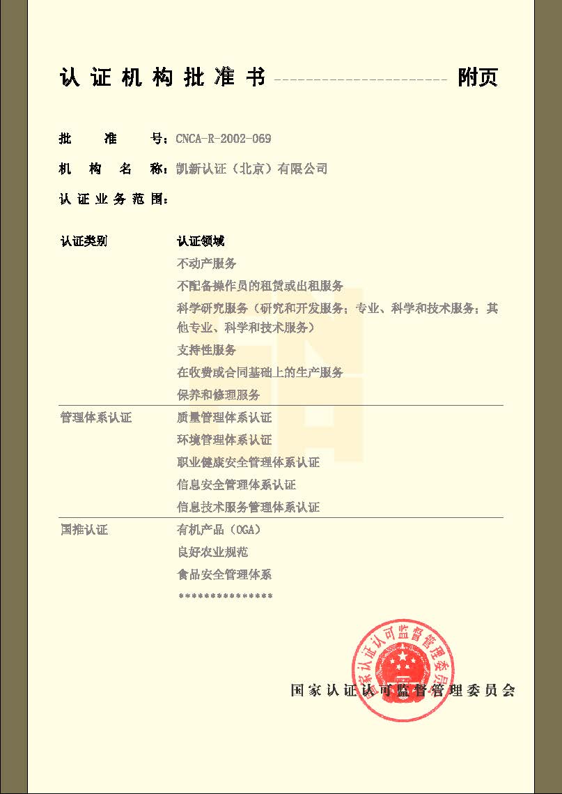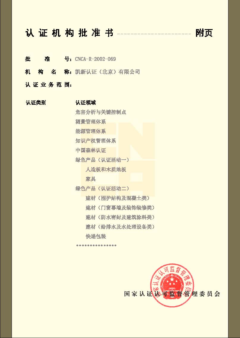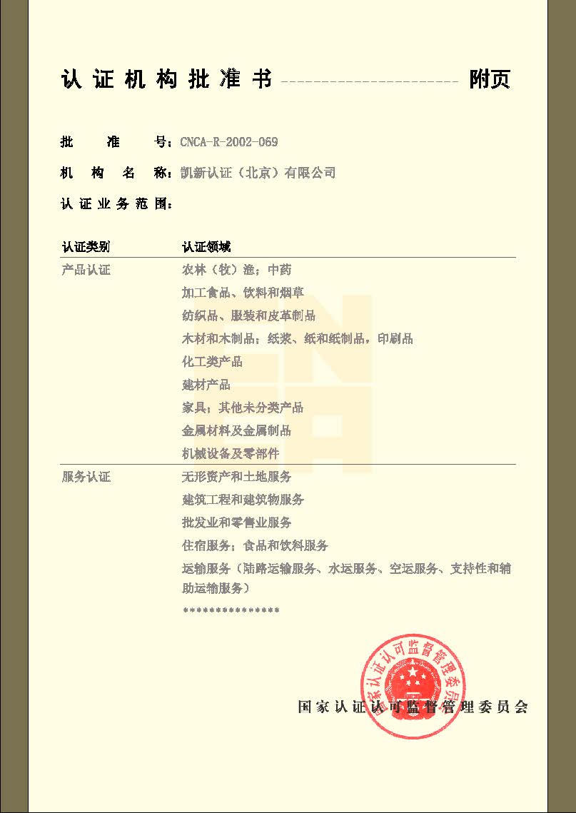 認(rèn)證機構(gòu)批準(zhǔn)書